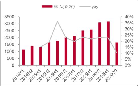 2014-2019Q3中順潔柔收入及變動趨勢