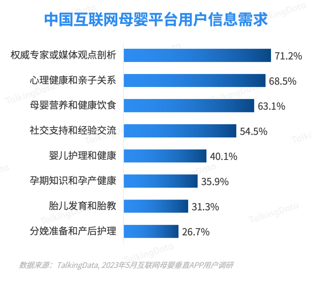 權(quán)威觀點(diǎn)剖析、心理健康和親子關(guān)系、母嬰營(yíng)養(yǎng)和健康飲食、社交支持和經(jīng)驗(yàn)交流相關(guān)信息更受用戶(hù)關(guān)注。