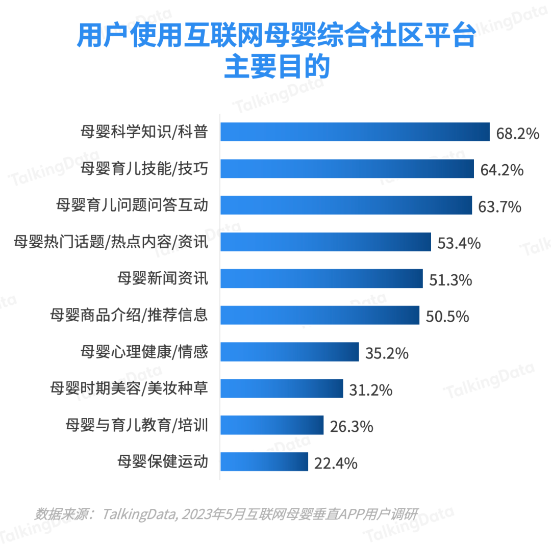 用戶(hù)使用母嬰綜合社區(qū)平臺(tái)主要是為了獲取母嬰科普信息、育兒技能和育兒話題互動(dòng)。