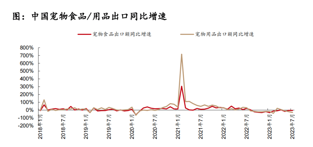 中國是主要寵物用品生產(chǎn)國,用品出口逐漸從底部回暖